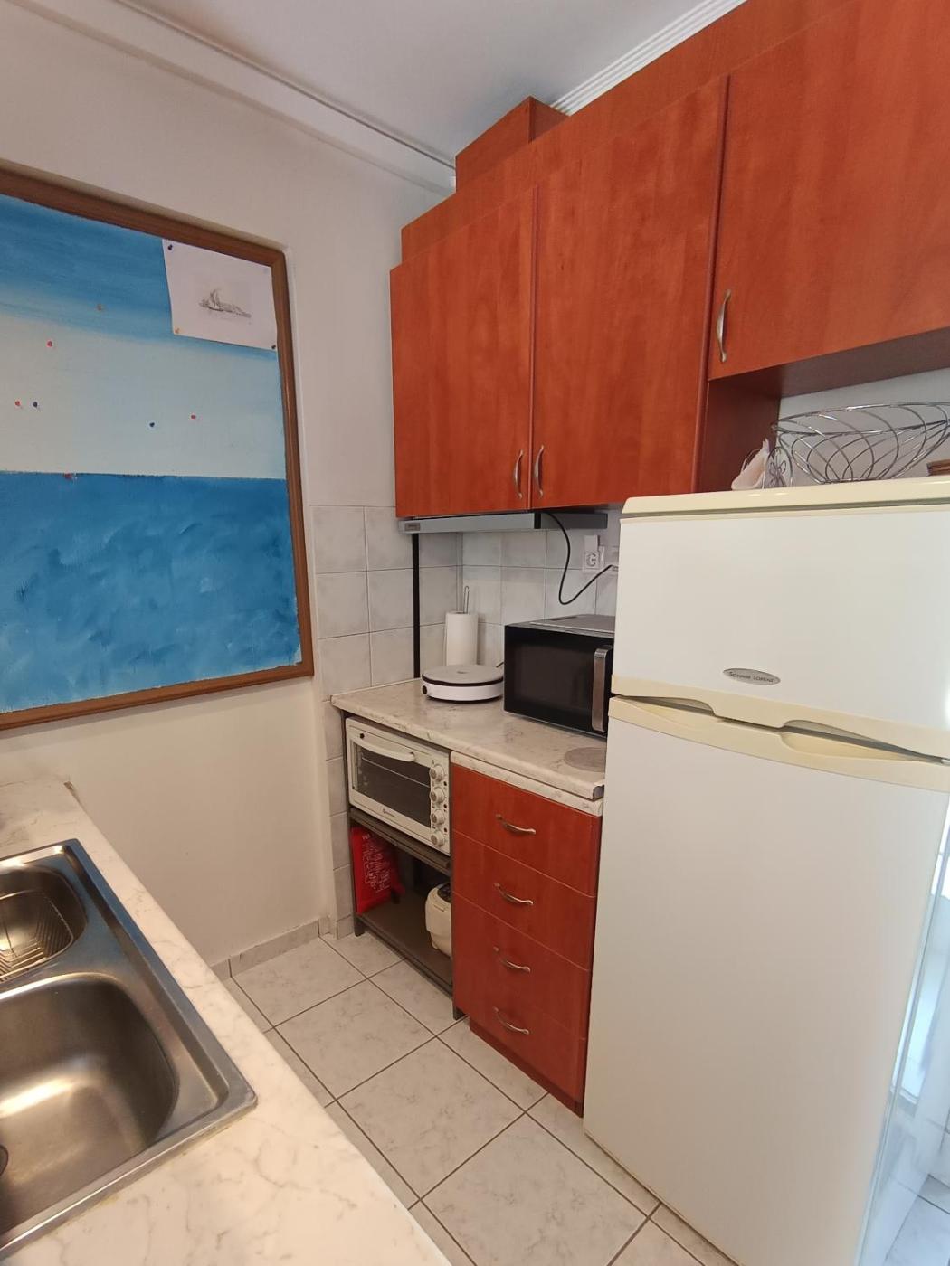 Studio Apartment with One Double Bed. The air-conditioned apartment features 1 bedroom and 1 bathroom with a shower and a hairdryer. The well-fitted kitchenette has a stovetop, a refrigerator, an oven and a microwave. Featuring a balcony, this apartment also provides a washing machine, a coffee machine and a flat-screen TV. The unit offers 1 bed. ;